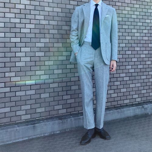 こんにちは。今日は先日レビューしたライトグレーのフランネルのスーツの着画をお送りします。前回のレビュー記事はこちら。