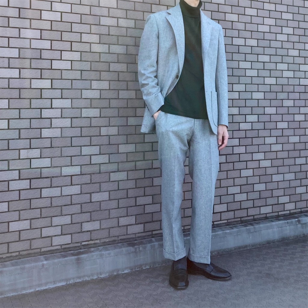 今回はライトグレーフランネルスーツのコーディネートの紹介でした。